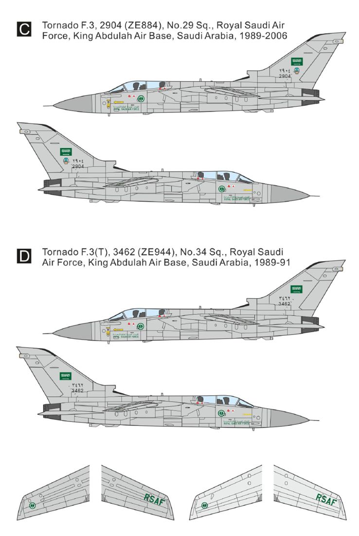 - Tornado F.3, 2904 (ZE884), No.29 Sq., Royal Saudi Air Force, King Abdulah Air Base, Saudi Arabia, 1989-2006