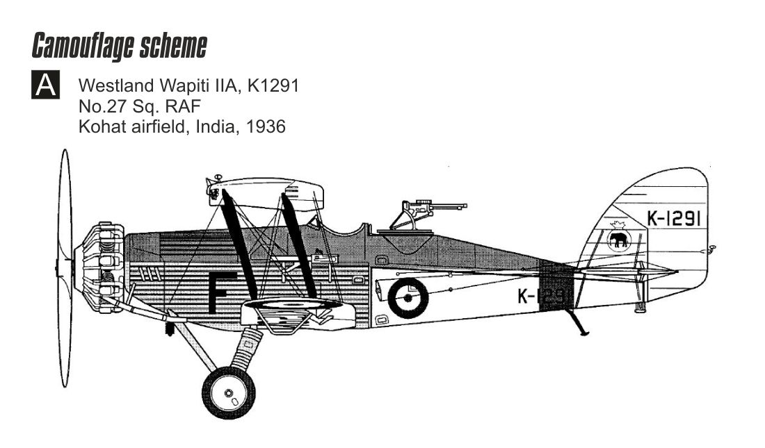 1)   Westland Wapiti Mk.IIA, K1291, 27. peruť, letiště Kohat, Indie, 1936