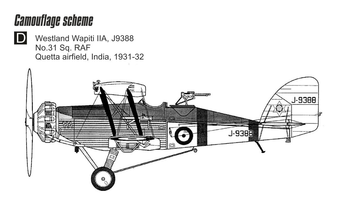4)   Westland Wapiti Mk.IIA, J9388, 31. peruť, letiště Kvéta, Indie, 1931-32