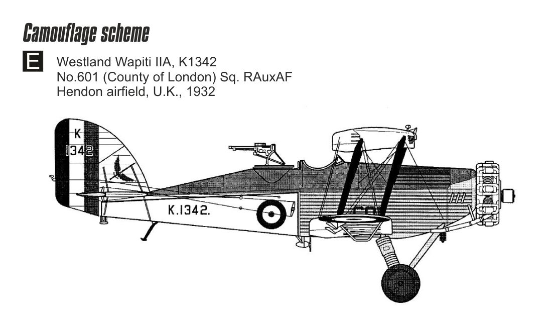 5)   Westland Wapiti Mk.IIA, K1342, 601. peruť (County of London), Královské pomocné letectvo (RAuxAF), letiště Hendon, Londýn, Velká Británie, 1932