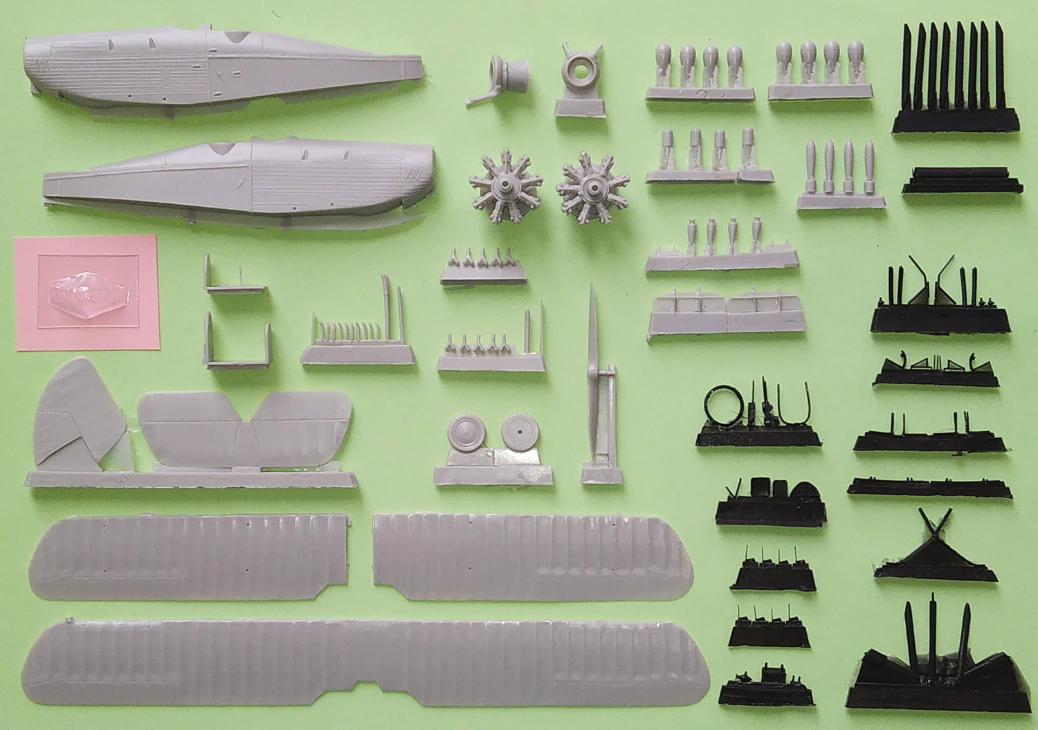 Tento resinový model obsahuje celkem 134 dílů, z toho 59 dílů z tvrzeného černého resinu (díly podvozku, vzpěry a další detaily), vaku větrný štítek (včetně jednoho náhradního) a obtiskový aršík.